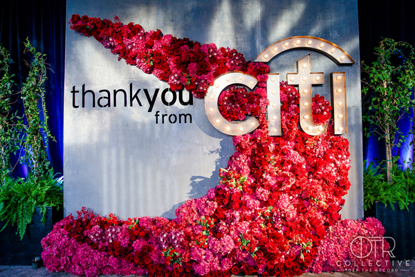 MAC Presents produced an exclusive concert with John Legend at the Emerson Theatre in Los Angeles for Citi Thank You. OTR added bold yet compact décor elements to create a grand and elegant Speak-Easy feel. The design highlight was a 15’x13’ steel wall holding a massive 3’ custom branded logo marquee light, enveloped by 4000 flowers.