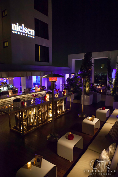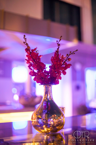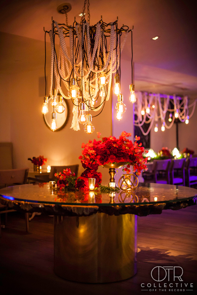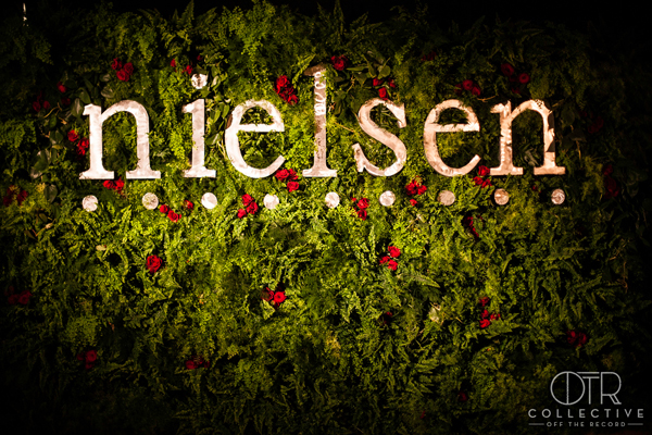 A custom step-and-repeat incorporating the Nielsen logo in 8’ brushed aluminum and a variety of over 400 lush green plants greeted guests as they entered the Mondrian Hotel in Los Angeles for an exclusive pre-GRAMMY party. MAC Presents produced the event, which featured performances from John Legend and The Preservation Hall Jazz Band and catered to influential agencies, brands and entertainment executives. OTR used metallic gold undertones and bountiful floral arrangements in monochromatic reds, with a focus on architecturally striking elements such as cube structures, terrariums, metallic spheres and a variety of Edison bulbs which were placed throughout the venue.